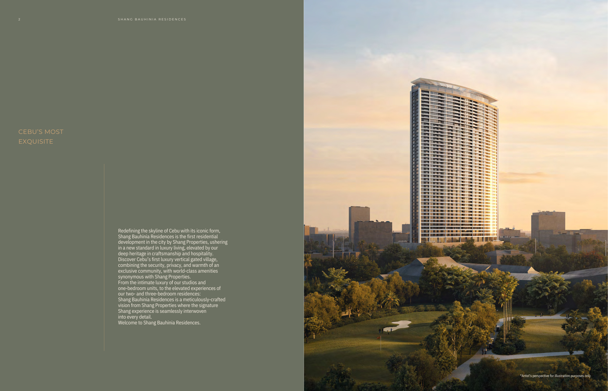 Redefining the skyline of Cebu with its iconic form, Shang Bauhinia Residences is the first residential development in the city by Shang Properties, ushering in a new standard in luxury living, elevated by our deep heritage in craftsmanship and hospitality.