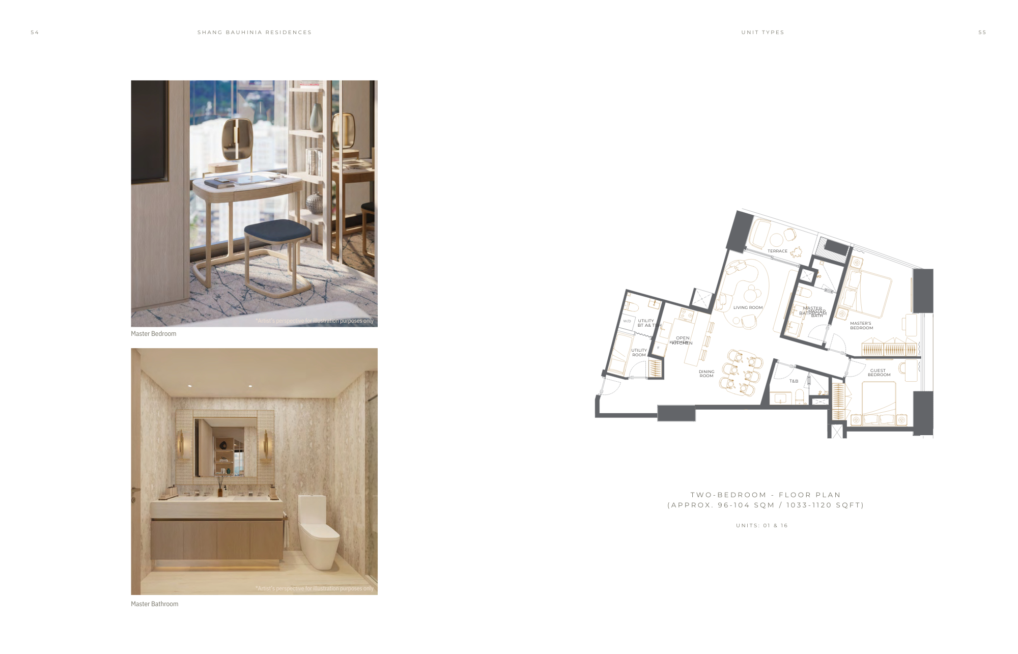• 2-Bedroom (Approx. 96 – 104sqm / 1,033 – 1120sqft)